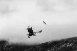 Sea eagles flying in the fjords of the Flatanger archipelago....