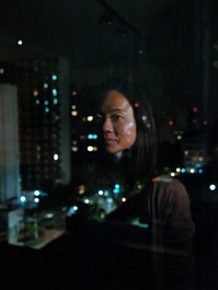 BRAZIL. Sao Paulo. 2019. Andrea Yamaguishi in front of a window...