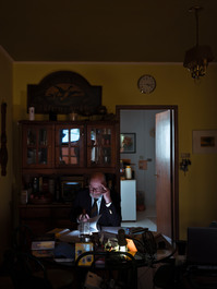 BRAZIL. Sao Paulo. 2019. Francis Bernardes reads a book in the...