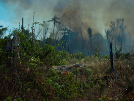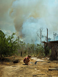 BRAZIL. 2019. Detail of the fire inside Sidnei´s Hübner fazenda,...