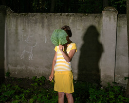 Oksana with a leaf of cabbage...