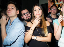 USA. NYC. Bar Patrons Watch the Third Presidential Debate.