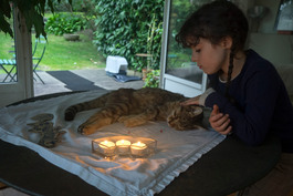 FRANCE. Fecamp. At home. The funeral of our cat Pataud. 2016....