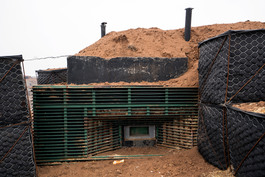 UKRAINE. Kurdiumivka. 2016. Exiting underground bunker of Ukrainian...
