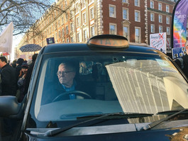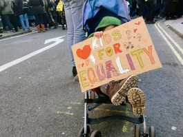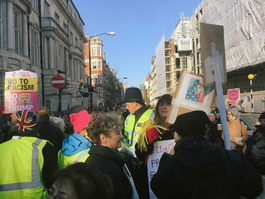 London. UK. January 21st, 2017. Protestors on the bus heading...