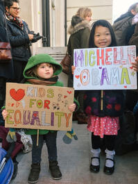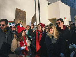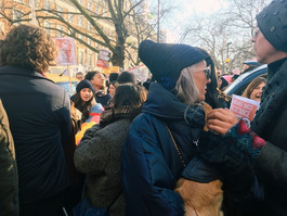 London. UK. January 21st, 2017. Protestors gathering in Grosvenor...