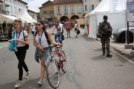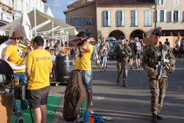 FRANCE. Marciac 01 August 2016. Jazz festival. Army patrolling...