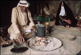 Negev Desert. Bedouin utensils for coffee ceremonies, in their...