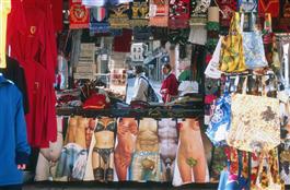 ITALY. Venice. 2002. Vendors of souvenir and fun aprons at Riva...