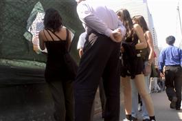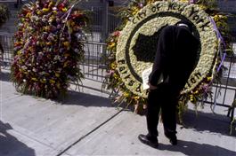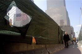 USA. New York City. September 11, 2003. A man looks at Ground...