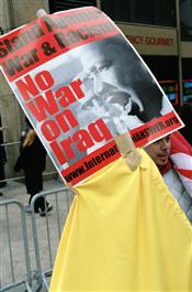 USA. New York City. February 15, 2003. Protester during demonstration...