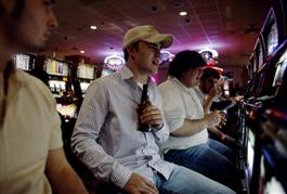 USA. Tunica, Mississippi. 2007. Gamblers with slot machines.