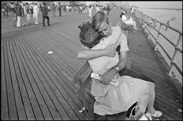 USA. NYC. Coney Island. 1977. A couple embraces on the boardwalk...