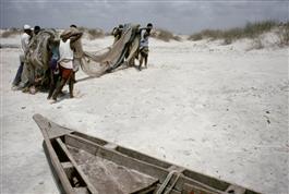 MOZAMBIQUE. Moma. 2002. Gathering small fish from the beach.