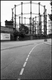ENGLAND. London. King's Cross. Summer 2000. Gas storage tanks...