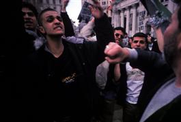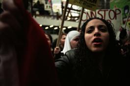 USA. New York City. 4/6/02. Pro-Palestinian demonstrations for...