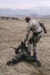 AFGHANISTAN. 2003. US soldier training Afghan army recruit.