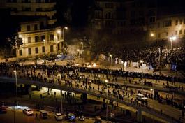EGYPT. Cairo. 2011. Protestors gather in front of an Egyptian...
