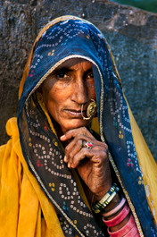 INDIA. Gujarat. 2007. A woman smiles and covers her mouth.