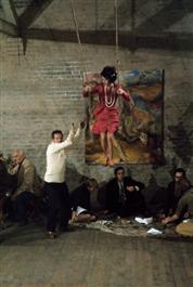 USA. San Francisco. 1960. Jess Collins and gallery owners hanging...