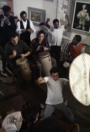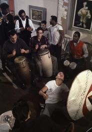 USA. San Francisco. 1960. Bongo party at a new place on the Beach...