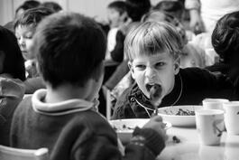 FRANCE. Paris 75010. Lunchtime at a private (Catholic) nursery...