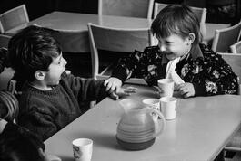FRANCE. Paris 75010. Friends at a private (Catholic) nursery...