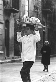 Caltanissetta: barman carrying breakfast. (I Siciliani)