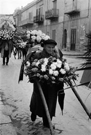 ITALY, Sicily, Bagheria: Poor man bringing flowers in a funeral....