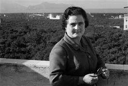 ITALY, Sicily, Bagheria; My mother on the terrace of the her...