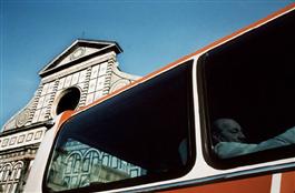 Italy, Florence: tourist bus and the church of St. Maria Novella....