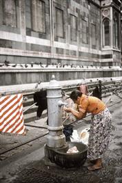 Italy, Florence: homeless washing clothes near St. Maria Novella....