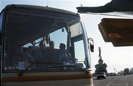 Italy, Florence: tourist bus in Piazzale Michelangelo.