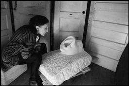 USA. NYC. 1991. Louise BOURGEOIS in her main studio in Brooklyn....