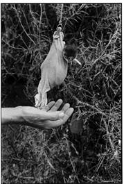 ARGENTINA. Patagonia. 2001. A baby Magellan penguin being weighed...