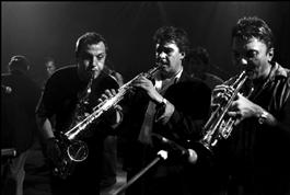 From left to right Benat ACHIARY (voc), Vinko GLOROKAR (tb),...