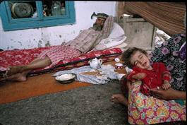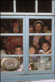 TAJIKISTAN. Shogara. 1993. Refugees in camp outside village mosque,...