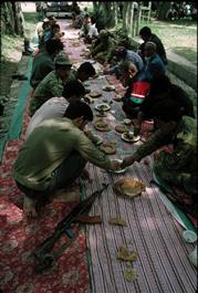 TAJIKISTAN. Kouliab. 1993. Lunch for armed militia formerly led...