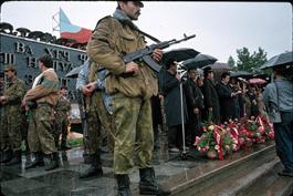 TAJIKISTAN. Kouliab. 1993. Carpet representing slain militia...