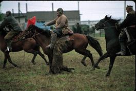 TAJIKISTAN. Kholkozabad. 1993. Traditional game of "bozkochi",...
