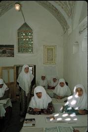 UZBEKISTAN. Near Samarkand. 1993. Al Bokhari medersa, koranic...