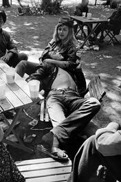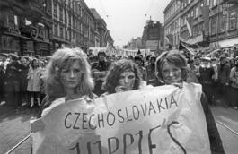 CZECHOSLOVAKIA. Prague. Three hippie young girls with a poster...