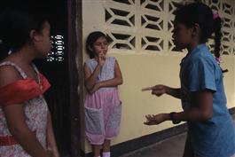 NICARAGUA. Managua. 1999. A deaf girl using Nicaraguan Sign...