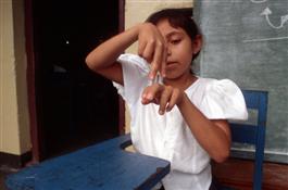 NICARAGUA. Managua. 1999. A deaf students using Nicaraguan Sign...