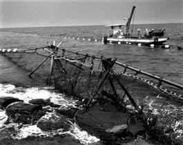 Japan. Minamata Bay. A net extends round Minamata Bay. Fish caught...