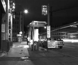 GB. London. Stockwell Bus Garage at night. Hoskyns Photo Project....