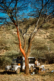 Africa. Kenya. 1954. Nairobi National Park. Setting up camp under...