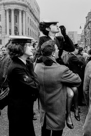 G.B. ENGLAND. London. Churchill Funeral. Trafalger square. Spectators...