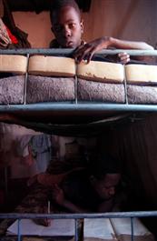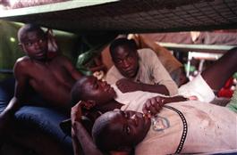 In Gitarama rehab centre. Passing time by sitting in the dormitory....