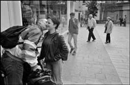 FRANCE. Haut Rhin. Mulhouse. 2000. A kiss in the pedestrian zone...